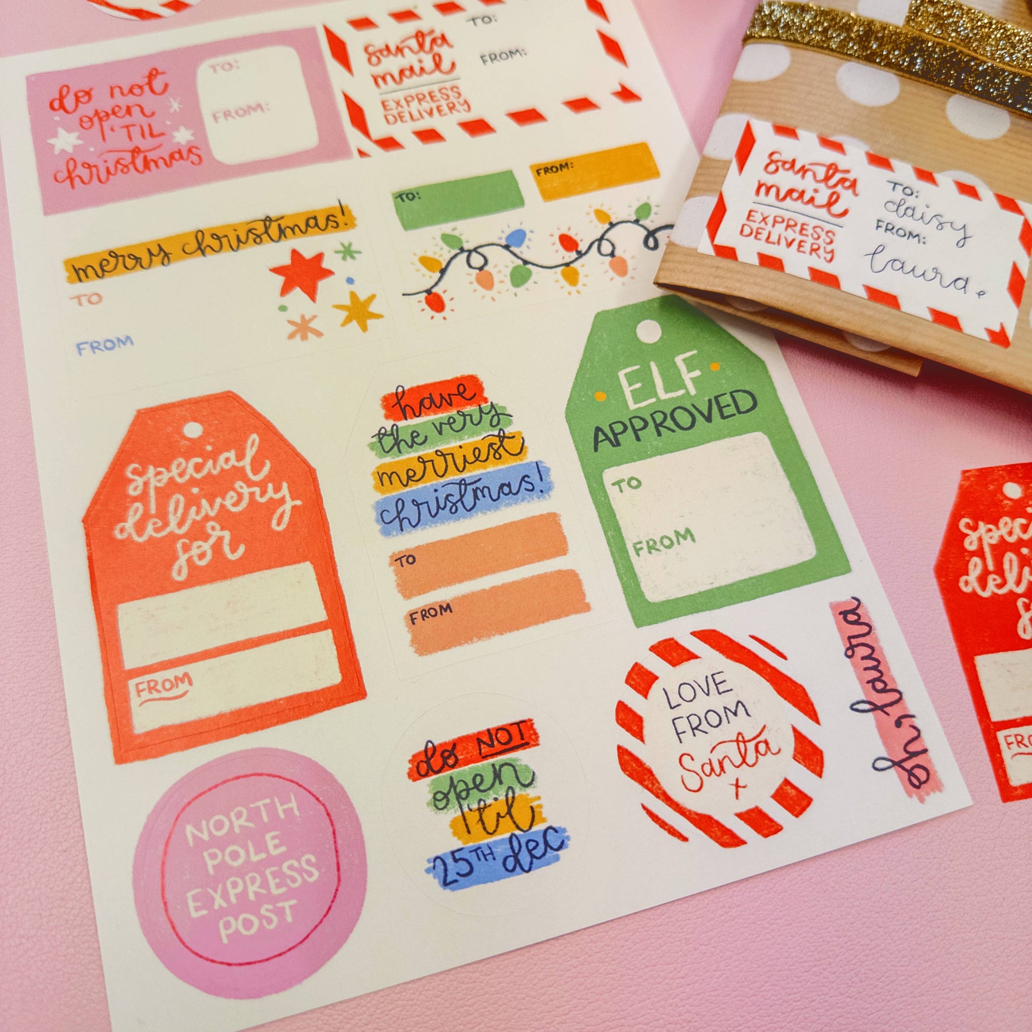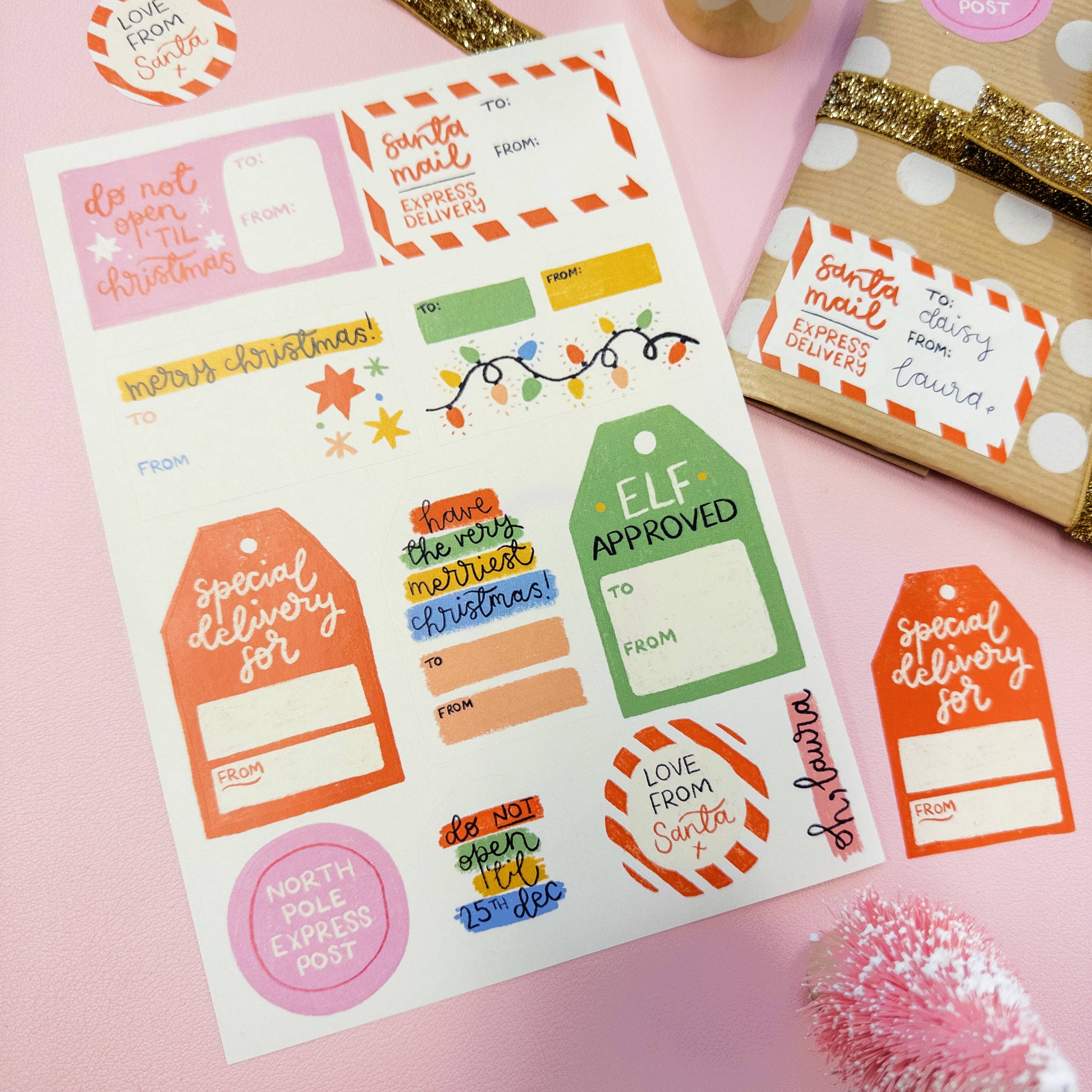 Christmas gift tags sticker sheet
